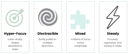 This quick quiz helps you understand whether you are Hyper-Focused, Distractible, Mixed, or Steady.